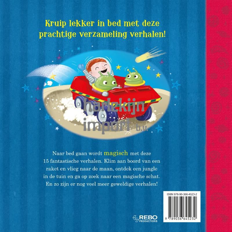 Naar bed gaan wordt magisch met deze 15 fantastische verhalen. Klim aan boord van een raket en vlieg naar de maan, ontdek een jungle in de tuin en ga op zoek naar een magische schat. En zo zijn er nog veel meer geweldige verhalen!