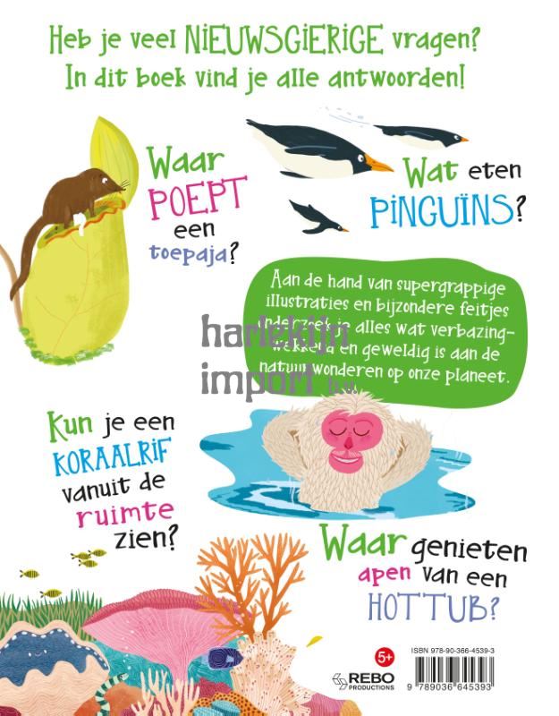 Heb je veel nieuwsgierige vragen? In dit boek vind je alle antwoorden! Aan de hand van supergrappige illustraties en bijzondere feitjes onderzoek je alles wat verbazingwekkend en geweldig is aan de natuurwonderen op onze planeet.