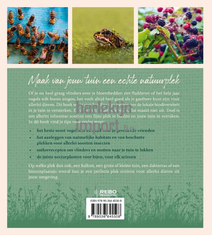 Of je nu heel graag vlinders over je bloembedden ziet fladderen of het hele jaar vogels wilt horen zingen, het voelt altijd heel goed als je gastheer kunt zijn voor allerlei dieren. Dit boek wil je met handige tips helpen om de lokale biodiversiteit in je tuin te versterken. En of je tuin groot of klein is, dat maakt niet uit. Doel is om allerlei inheemse soorten een fijne plek te bieden en jouw tuin te verrijken. Op welke plek dan ook, een balkon, een grote of kleine tuin, een dakterras of een binnenplaatsje: overal kun je een perfecte plek creƫren voor allerlei dieren uit jouw omgeving.