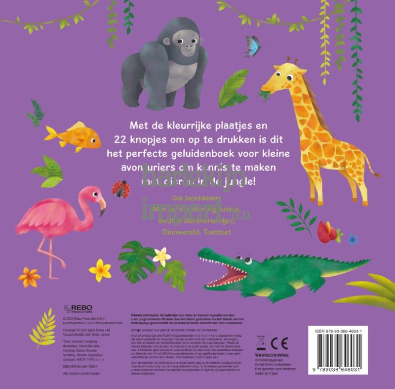 Met de kleurrijke plaatjes en 22 knopjes om op te drukken is dit het perfecte geluidenboek voor kleine avonturiers om kennis te maken met dieren in de jungle.