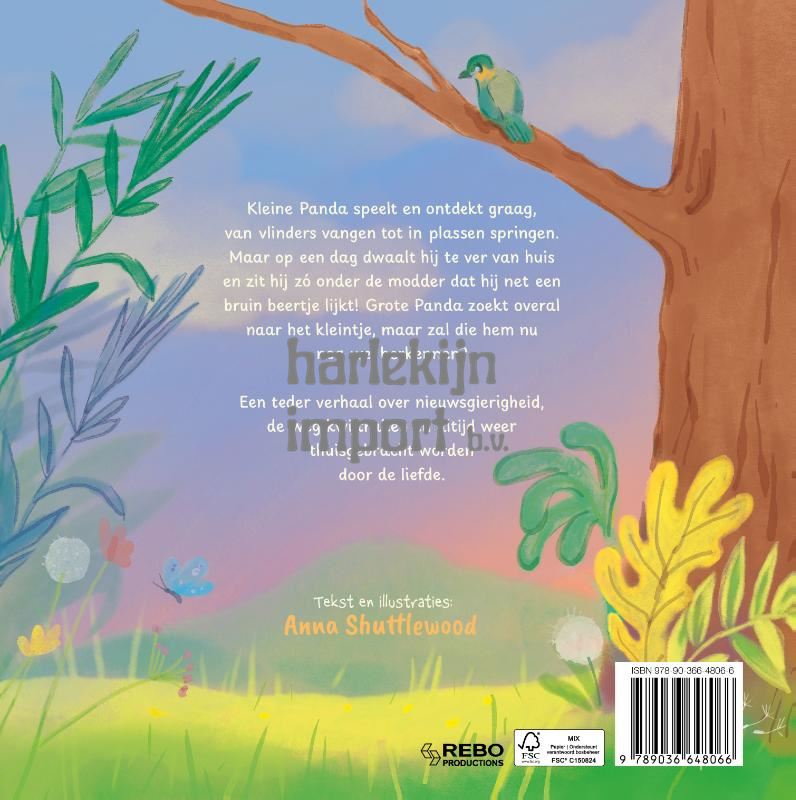 Kleine Panda speelt en ontdekt graag, van vlinders vangen tot in plassen springen. Maar op een dag dwaalt hij te ver van huis en zit hij zó onder de modder dat hij net een bruin beertje lijkt! Grote Panda zoekt overal naar het kleintje, maar zal die hem nu nog wel herkennen? Een teder verhaal over nieuwsgierigheid, de weg kwijtraken en altijd weer thuisgebracht worden door de liefde.