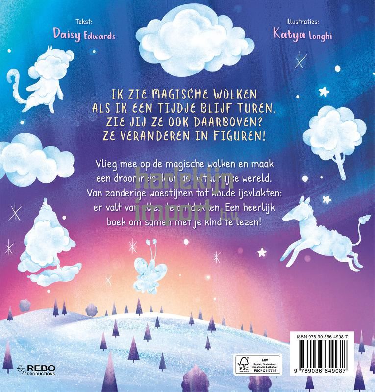 Ik zie magische wolken als ik een tijdje blijf turen. Zie jij ze ook daarboven? Ze veranderen in figuren! Vlieg mee op de magische wolken en maak een droomreis door de natuurlijke wereld. Van zanderige woestijnen tot koude ijsvlakten: er valt van alles te ontdekken. Een heerlijk boek om samen met je kind te lezen!