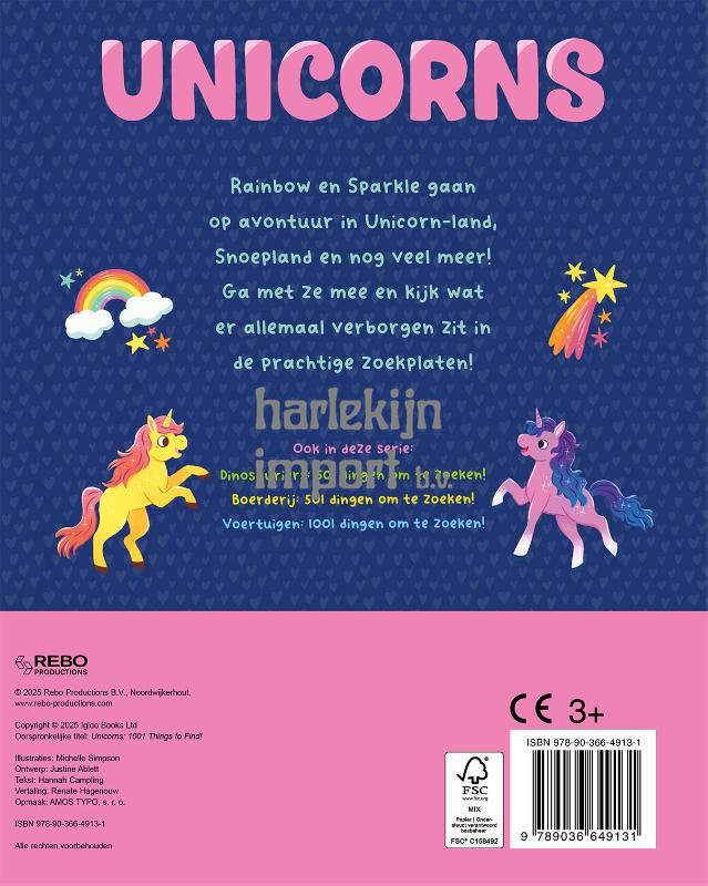 Rainbow en Sparkle gaan op avontuur in Unicorn-land, Snoepland en nog veel meer! Ga met ze mee en kijk wat er allemaal verborgen zit in de prachtige zoekplaten!