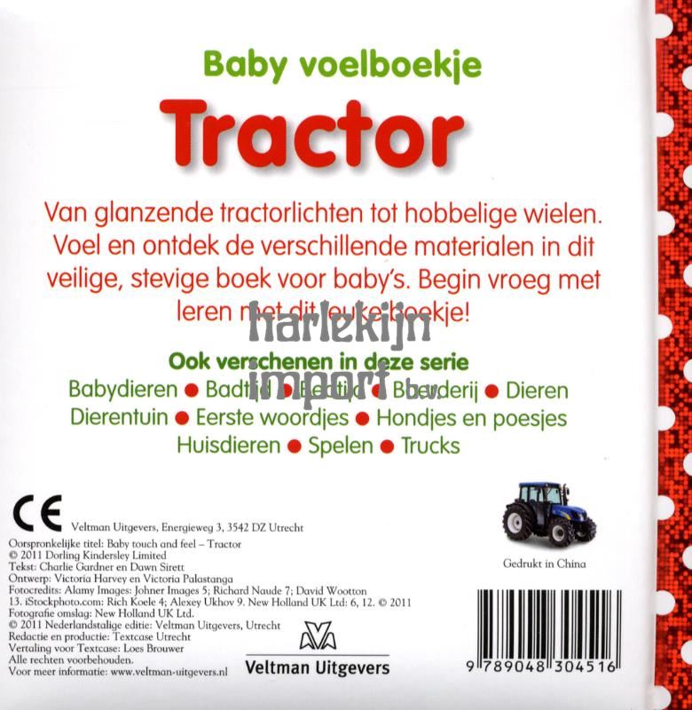 Van glanzende tractorlichten tot hobbelige wielen. Voel en ontdek de verschillende materialen in dit veilige, stevige boek voor babys. Begin vroeg met leren met dit leuke boekje!