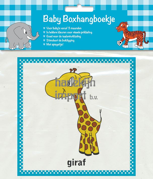 Spelenderwijs kennismaken met het lezen van boekjes kan heel goed met dit boxhangboekje. Het is de bedoeling dat het boekje in de box wordt opgehangen zodat baby's er liggend naar kunnen kijken. Het spiegeltje zorgt voor extra dolle pret!