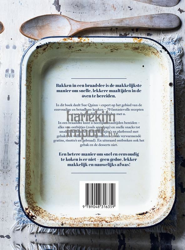 Bakken in een braadslee is de makkelijkste manier om snelle, lekkere maaltijden in de oven te bereiden. In dit boek deelt Sue Quinn ? expert op het gebied van de eenvoudige en betaalbare keuken ? 70 fantasievolle recepten voor de dagelijkse maaltijden. In een braadslee kunt u heerlijke maaltijden bereiden ? alles van ontbijtjes (zoals appelpap) en snelle snacks tot smakelijke lunches (zoals kipfajita's en platbrood met gehakt ) en vullende hoofdgerechten (zoals verwarmende gratins, risotto?s en gebraad). En uiteraard ontbreken ook het gebak en de desserts niet. Een betere manier om snel en eenvoudig te koken is er niet ? geen gedoe, lekker makkelijk en nauwelijks afwas! Sue Quinn is een bekroond culinair auteur en journalist. Haar boeken omvatten een hele reeks keukens, van de Japanse tot de veganistische, maar ze schrijft ook boeken gericht op koken met kinderen en gezond eten. In 2016 kreeg ze de Online Food Writer Award van Fortnum & Mason, en haar artikelen en recepten verschijnen regelmatig in toonaangevende culinaire magazines.