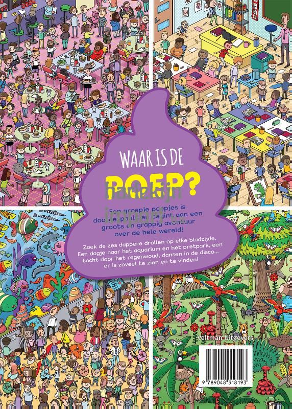 Een groepje poepjes is doorgespoeld en begint aan een groots en grappig avontuur over de hele wereld! Zoek de zes dappere drollen op elke bladzijde. Een dagje naar het aquarium en het pretpark, een tocht door het regenwoud, dansen in de disco... er is zoveel te zien en te vinden!