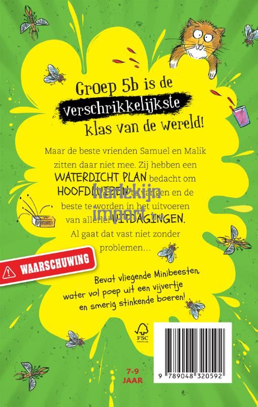 Groep 5b is de verschrikkelijkste klas van de wereld! Maar de beste vrienden Samuel en Malik storen zich daar niet aan. Ze hebben een onfeilbaar plan om hoofdluizen te vangen en verslaan iedereen die hen uitdaagt. Het zou hier en daar alleen wel eens voor wat chaos kunnen zorgen… Met vliegende minibeestjes, poeperig vijverwater, en echte stinkende boeren!