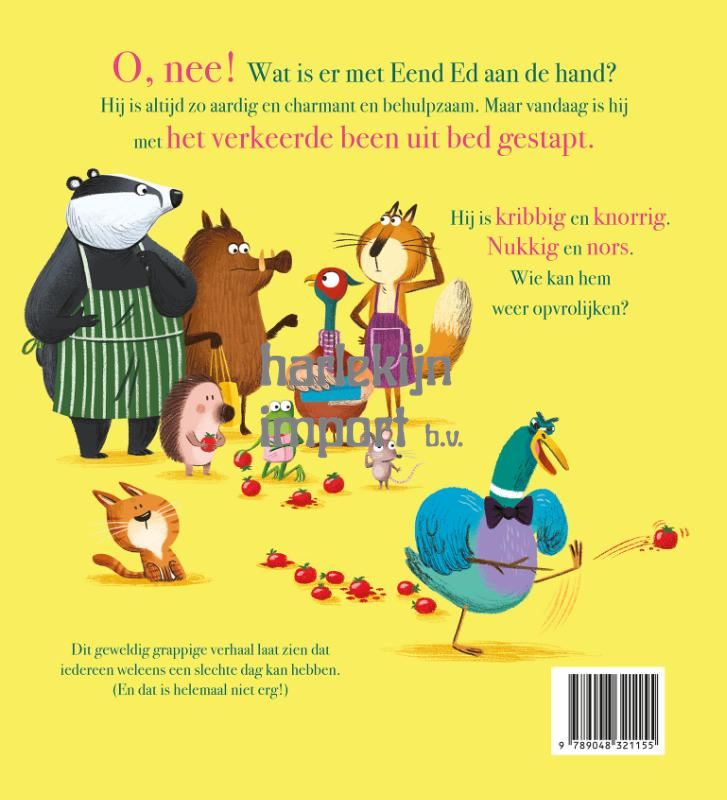 O, nee! Wat is er met Eend Ed aan de hand? Hij is altijd zo aardig en charmant en behulpzaam. Maar vandaag is hij met het verkeerde been uit bed gestapt. Hij is kribbig en knorrig. Nukkig en nors. Wie kan hem weer opvrolijken? Dit geweldig grappige verhaal laat zien dat iedereen weleens een slechte dag kan hebben. (En dat is helemaal niet erg!)