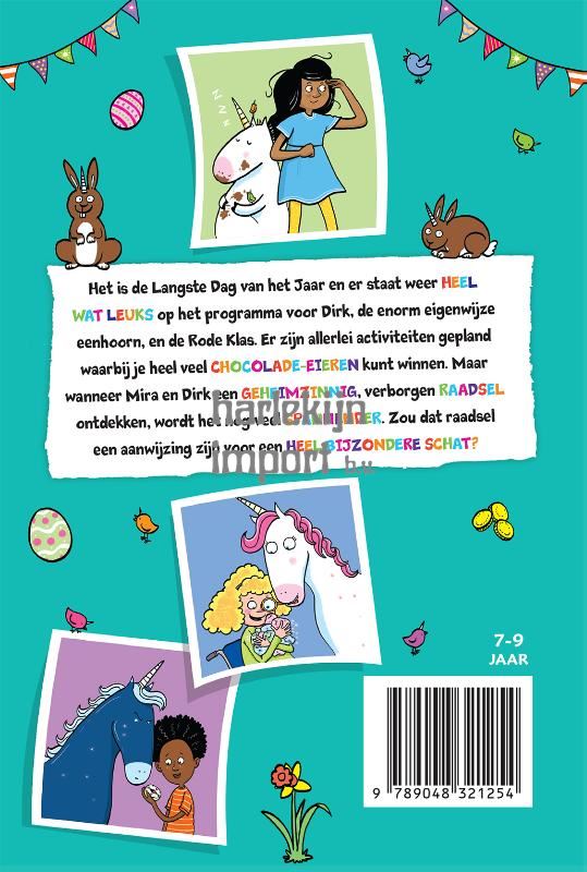 Zoek mee naar verborgen schatten op de EENHOORNSCHOOL! Het is de Langste Dag van het Jaar en er staat weer HEEL WAT LEUKS op het programma voor Dirk, de enorm eigenwijze eenhoorn, en de Rode Klas. Er zijn allerlei activiteiten gepland waarbij je heel veel CHOCOLADE-EIEREN kunt winnen. Maar wanneer Mira en Dirk een GEHEIMZINNIG, verborgen RAADSEL ontdekken, wordt het nog veel SPANNENDER. Zou dat raadsel een aanwijzing zijn voor een HEEL BIJZONDERE SCHAT?