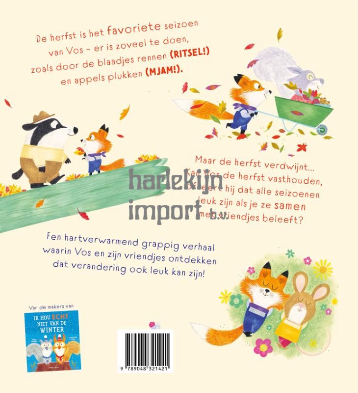 De herfst is het favoriete seizoen van Vos – er is zoveel te doen, zoals door de blaadjes rennen (RITSEL!) en appels plukken (MJAM!). Maar de herfst verdwijnt... Kan Vos de herfst vasthouden, of leert hij dat alle seizoenen leuk zijn als je ze samen met vriendjes beleeft? Een hartverwarmend grappig verhaal waarin Vos en zijn vriendjes ontdekken dat verandering ook leuk kan zijn!