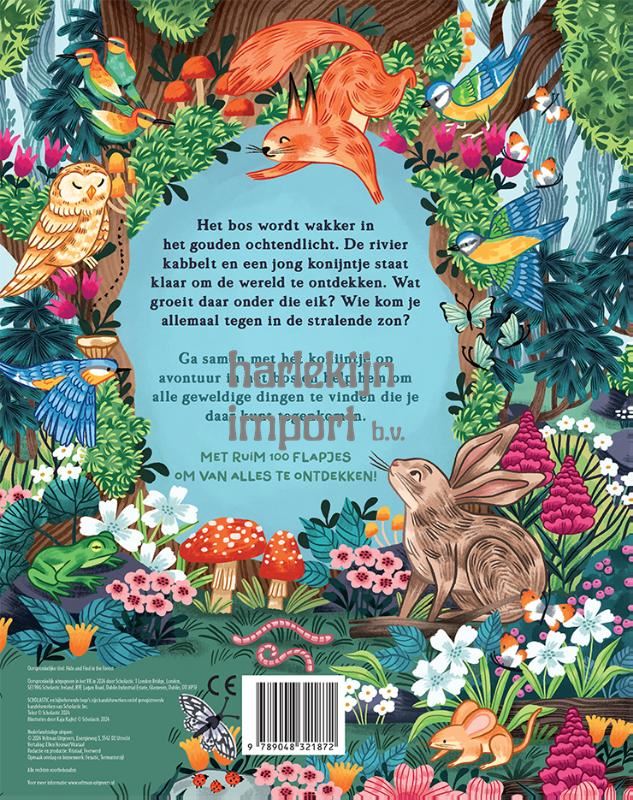 Het bos wordt wakker in het gouden ochtendlicht. De rivier kabbelt en een jong konijntje staat klaar om de wereld te ontdekken. Wat groeit daar onder die eik? Wie kom je allemaal tegen in de stralende zon? Ga samen met het konijntje op avontuur in het bos en help hem om alle geweldige dingen te vinden die je daar kunt tegenkomen. Met ruim 100 flapjes om van alles te ontdekken!