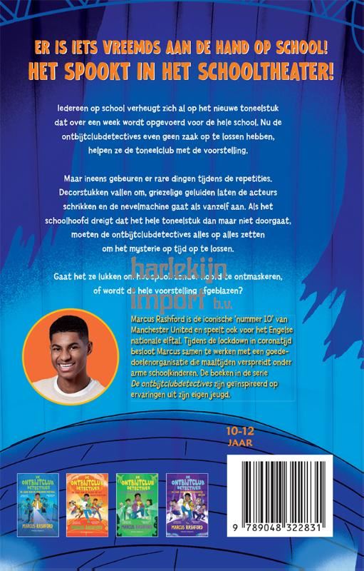 Iedereen op school verheugt zich al op het nieuwe toneelstuk dat over een week wordt opgevoerd voor de hele school. Nu de ontbijtclubdetectives even geen zaak op te lossen hebben, helpen ze de toneelclub met de voorstelling. Maar ineens gebeuren er rare dingen tijdens de repetities. Decorstukken vallen om, griezelige geluiden laten de acteurs schrikken en de nevelmachine gaat als vanzelf aan. Als het schoolhoofd dreigt dat het hele toneelstuk dan maar niet doorgaat, moeten de ontbijtclubdetectives alles op alles zetten om het mysterie op tijd op te lossen. Gaat het ze lukken om het spook zonder hoofd te ontmaskeren, of wordt de hele voorstelling afgeblazen?