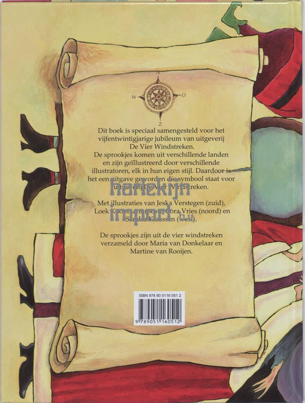 Sprookjes uit de vier windstreken is speciaal samengesteld voor het jubileumjaar van uitgeverij De Vier Windstreken. Ieder sprookje komt uit een andere hoek en is door een andere illustrator uitgewerkt. Daardoor is het een uitgave geworden die symbool staat voor uitgeverij De Vier Windstreken: zoveel verschillende prentenboeken uit zoveel verschillende landen, die samen een creatief en vruchtbaar geheel vormen.