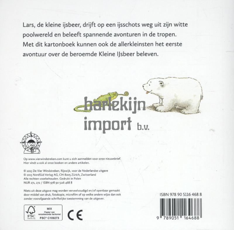 Lars, de kleine ijsbeer, drijft op een ijssschots weg uit zijn witte poolwereld en beleeft spannende avonturen in de tropen. Met dit kartonboek kunnen ook de allerkleinsten het eerste avontuur over de beroemde Kleine IJsbeer beleven. Dit kartonboek bevat een ingekorte versie van het verhaal uit het prentenboek 'Een ijsbeer in de tropen'.