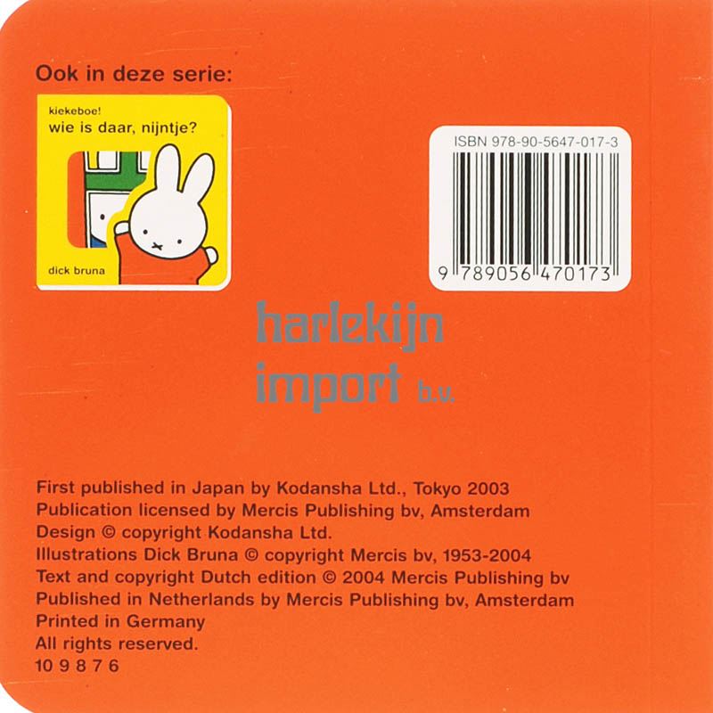 Overal is wel iets te ontdekken. Wie zit er achter de blokken verstopt? En waar is de koe gebleven? Help nijntje om iedereen te vinden. Door het handzame formaat kunnen ze lekker zelf kijken, maar het boekje is ook leuk om samen met een volwassene te lezen.