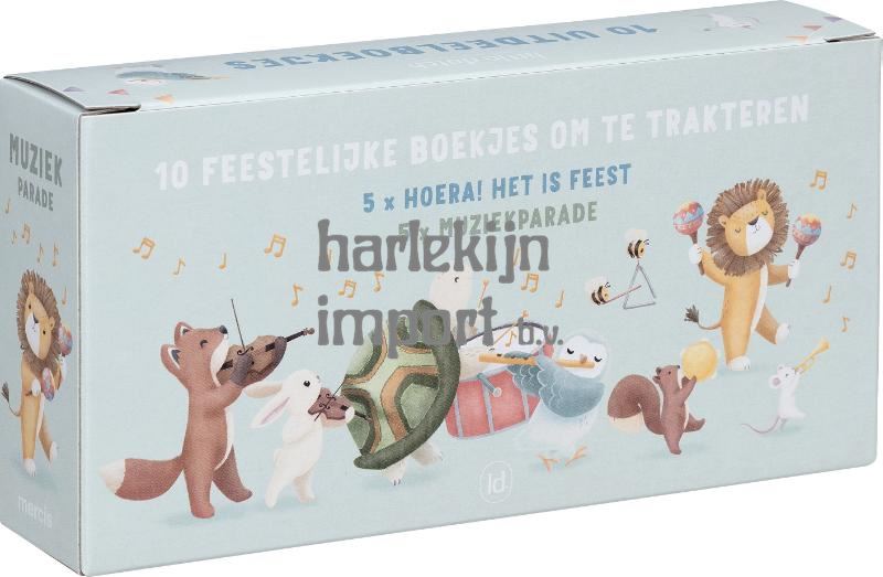 Wat een feest: er zijn twee nieuwe uitdeelboekjes van Little Dutch! De titels van deze boekjes zijn al net zo feestelijk als de verpakking: 'Hoera! Het is feest' en 'Muziekparade'. 'Hoera! Het is feest' gaat over alle aspecten van een verjaardag. Met taart, slingers en confetti wordt de verjaardag van leeuw gevierd. En natuurlijk wordt er ook gezongen! Twee violen en een trommel en een fluit... In 'Muziekparade' sluit steeds een ander dier bij de muzikale optocht aan. Weet jij hoe alle instrumenten heten? Leuk om te geven of te krijgen voor iedereen die iets te vieren heeft! Box met 2 titels x 5 exemplaren.