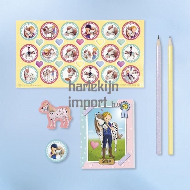 Stip de Pony etui, bevat notitieblokje, 2 potloden, gum, slijper en stickervel.