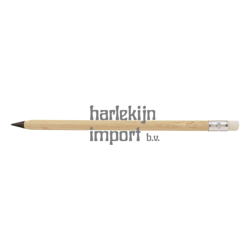 Bamboe Potlood eindeloos, rond met gum. 8 mm gafiet. 12 stuks in koker. |