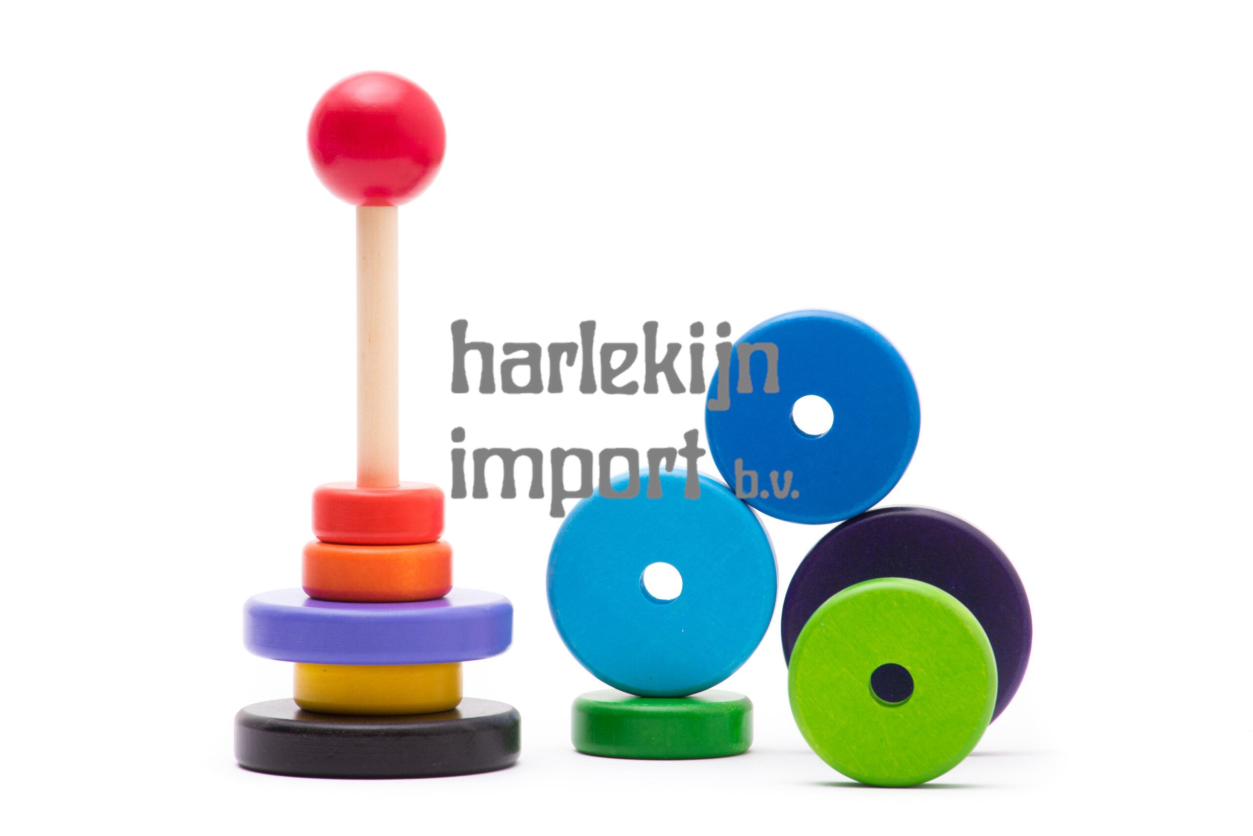 BAJO houten Stapelpiramide groot. 10 delig. 10x10x24,7 cm. 2+