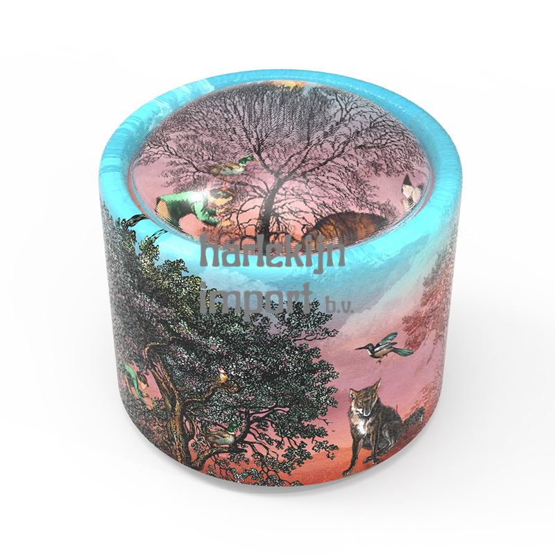 The optical enchantment and the shimmering of their glass half-globes attracts the eye to these surprising, sumptuous-looking paper boxes.
