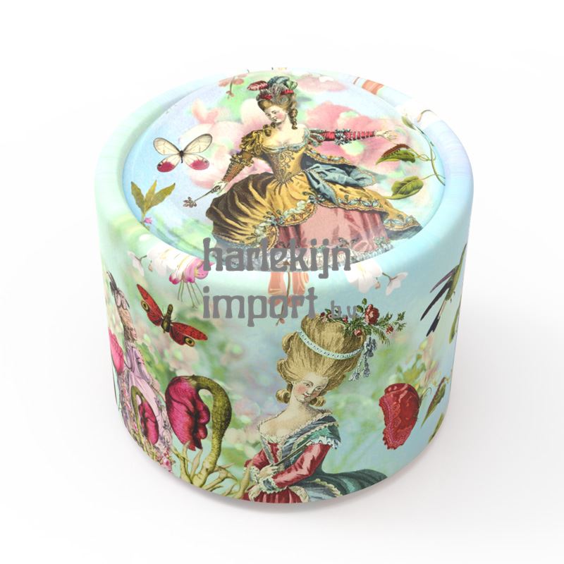 De optische betovering en de glinstering van hun glazen halve bollen trekken de aandacht naar deze verrassende, weelderig uitziende papieren dozen.
