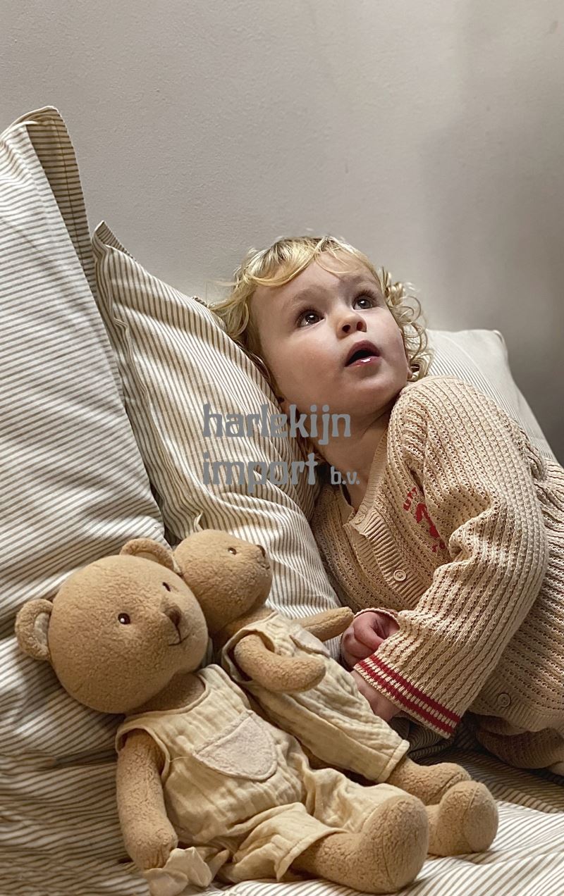 Marcel is een heel zachte beer, gemaakt van bio-katoen en met een vulling van gerecycleerd polyester.