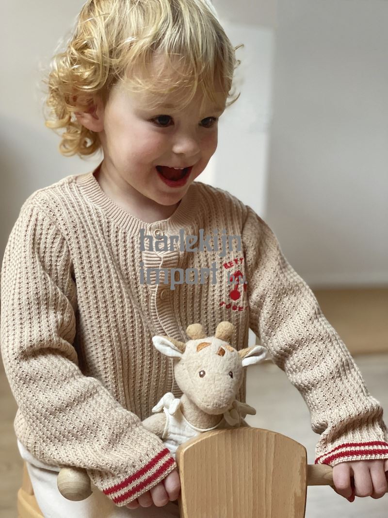Léonie is een heel zachte giraf, gemaakt van bio-katoen en met een vulling van gerecycleerd polyester.