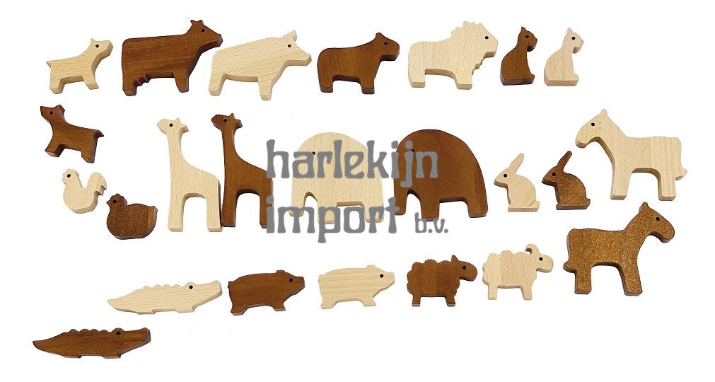 24 diertjes in beukenhout willen in de ark van Noah.