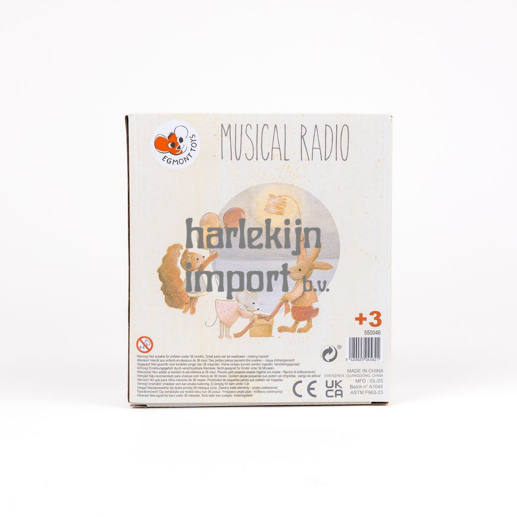 Egmont Muziekdoos/Radio Vrienden. 17 x 16 x 6 cm. 3+