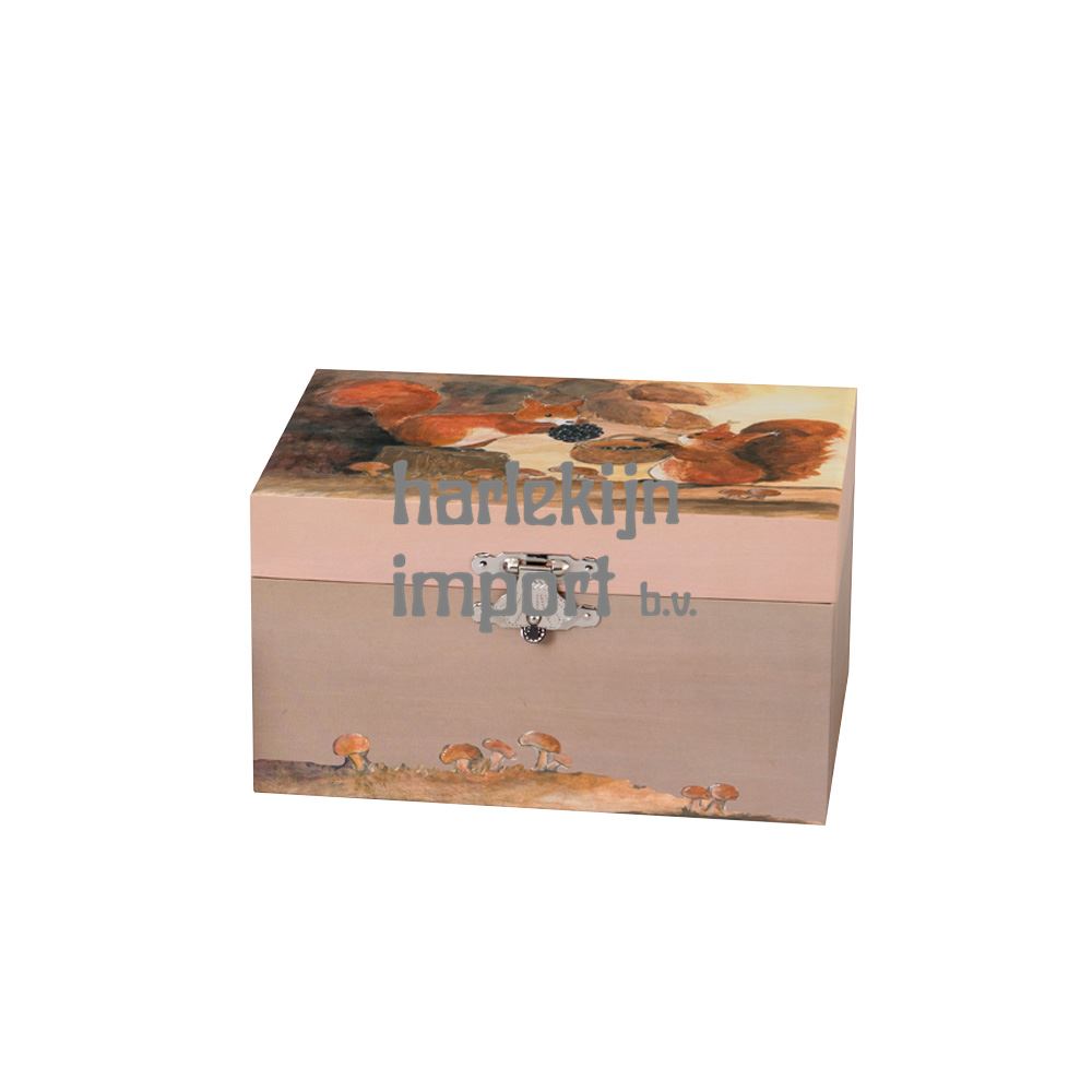 De perfecte oplossing om al je kleine schatten op te bergen, deze muziekdoos eekhoorn. Achteraan opwinden, de doos openen en de ballerina begint te dansen. 3 jaar+.