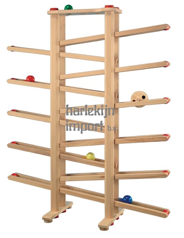 De knikkerbaan XXL fascineert zowel kinderen als volwassenen. De verschillende looponderdelen prikkelen de zintuigen en laten je de wereld om je heen even vergeten.
