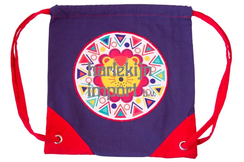Gymtas met voering wilde dieren 33x35 cm 4 ass