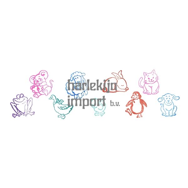 Zelfinktende stempels met dierenmotieven, kunststof. 2,6x4,5 cm. 10 motieven. 60 stuks in display. 3+