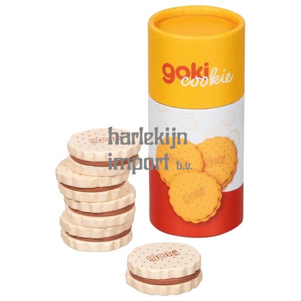 "Eén pakje van die heerlijke sandwichkoekjes, alsjeblieft." Iedereen die deze rijkelijk vervaardigde houten goki-sandwichkoekjes in zijn speelwinkel heeft, zal deze uitdrukking, of een variatie ervan, ongetwijfeld vaak horen. De vijf "knapperige" houten koekjes, verkocht in een stevige kartonnen buis die ideaal is voor verkooppromotie, zijn gewoon een succes in elk winkel-rollenspel. Goki toont ook zijn liefde voor detail als het gaat om accessoires voor de Play Shop. We vinden het gewoon leuk om kinderen gelukkig te maken.