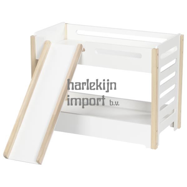 De glijbaan, ladder en lade geven het normaal gesproken zeer functionele "poppenbed" meubel een aantrekkelijk, speels karakter.