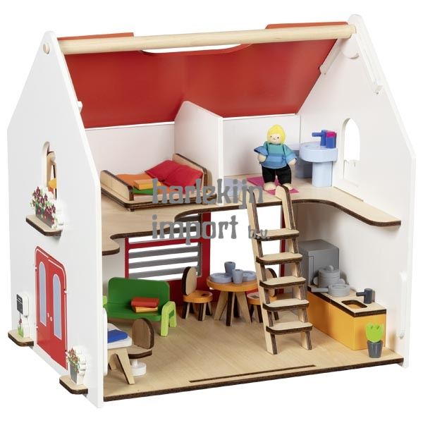 Draagbaar poppenhuis Eco House, met accessoires.