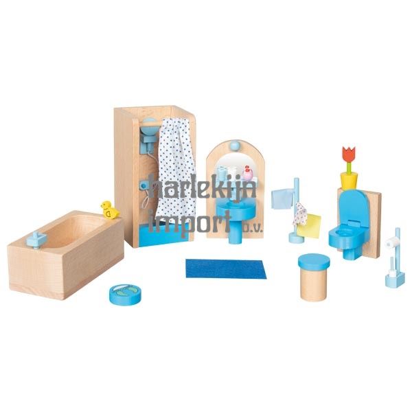 GOKI Meubels voor flexibele poppen, badkamer. 17 delig. 3+