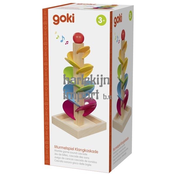 Knikker spel geluid cascade, met 2 knikkers. 13x13x30 cm. 3+ |