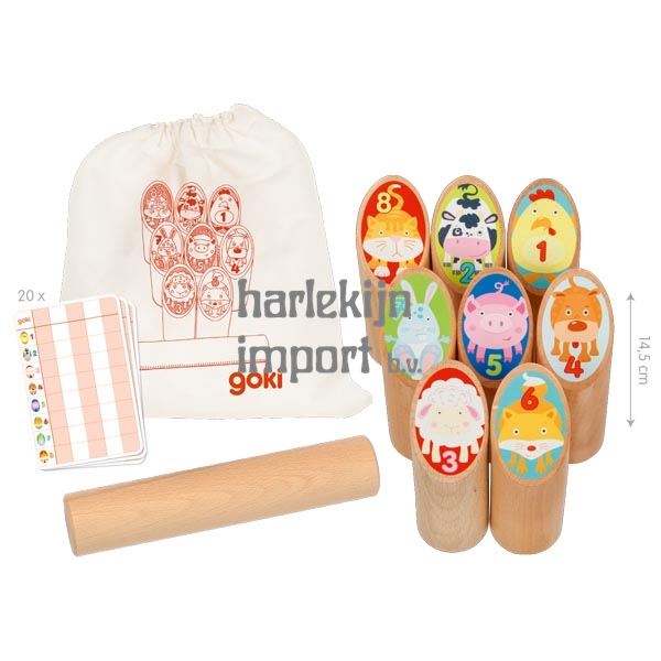 Vikingspel dierenkubb, in een katoenen zakje. 11 delig. 4,5x14,5 cm. 4+