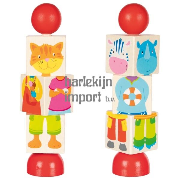 Draaibare puzzeldieren. 4x4x17,5 cm. 1+