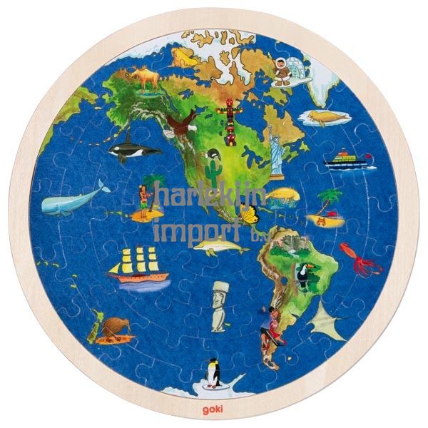 Puzzel rond Wereld. 2 zijdig. 57 delig. 30 cm. 6+