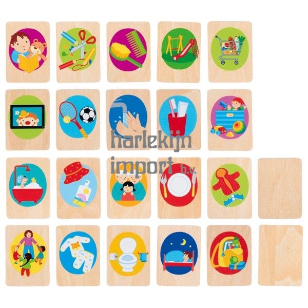 Wat heb je vandaag gedaan? Weet je het nog? Wat zijn je plannen voor morgen? Laten we het plannen met de routinekaarten. Je zult veel plezier hebben met ze spelen en onderweg veel leren. Is het beter om 's ochtends meteen je tanden te poetsen en daarna te ontbijten, of andersom? Praat erover en vind de beste dagelijkse routine! De kaarthouder en kaartjes zijn van hout, dus ze gaan jarenlang mee, zelfs bij intensief dagelijks gebruik! Met 23 kaarten heb je volop opties om je dagelijkse routine te beschrijven. We hebben twee kaarten leeg gelaten voor het geval er iets belangrijks voor je is dat niet wordt behandeld. Doe je ballet of theater? Rijd je te paard of hou je van wandelen en spelen met je hond? Ontwerp je eigen gepersonaliseerde kaarten! Deze spelset is een educatief speelgoed van hoge kwaliteit dat vanuit pedagogisch oogpunt uiterst waardevol is en taalvaardigheden uitzonderlijk goed bevordert. Al met al is het een zeer aanbevolen houten speeltje.