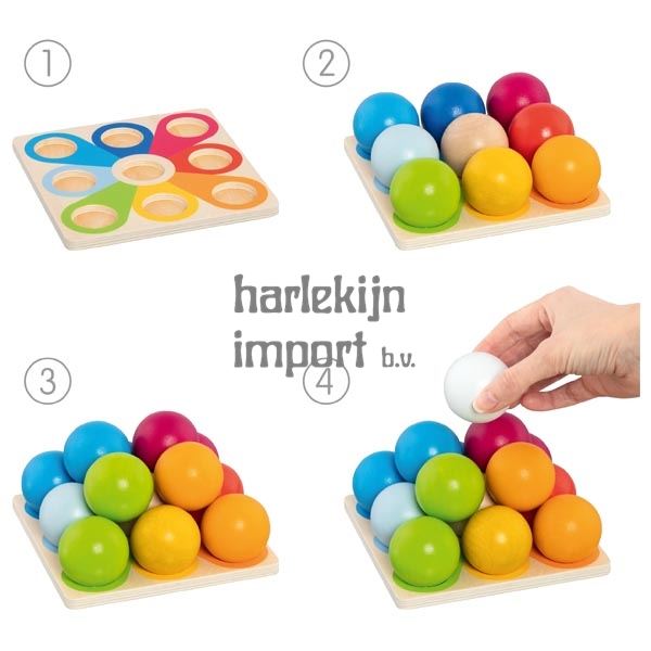Negen van de 14 bollen kunnen op kleur op de bodemplaat worden gesorteerd