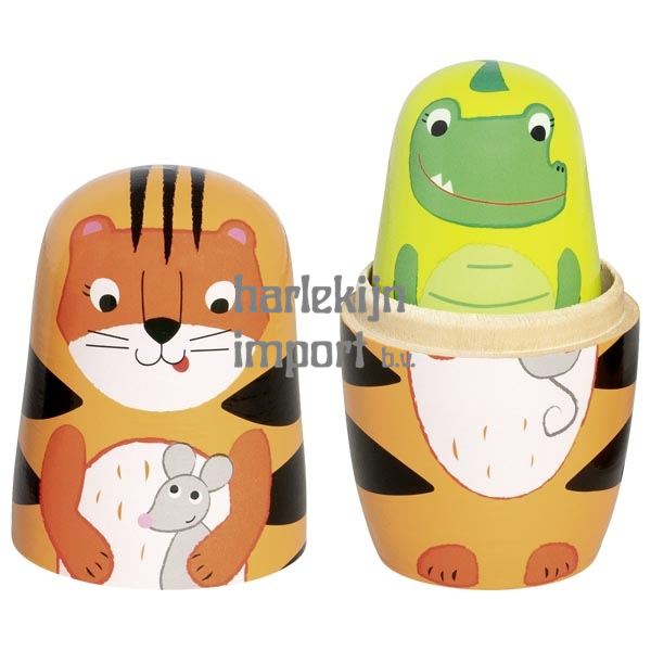 Matroesjka poppen, tijger Tavi en zijn vrienden. 5 figuren. 6,5x14,5 cm. 3+ |