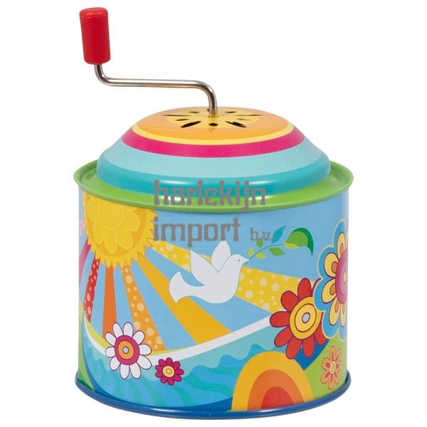 Draai aan de slinger van je metalen muziekdoos en de melodie van You Are My Sunshine zal klinken.