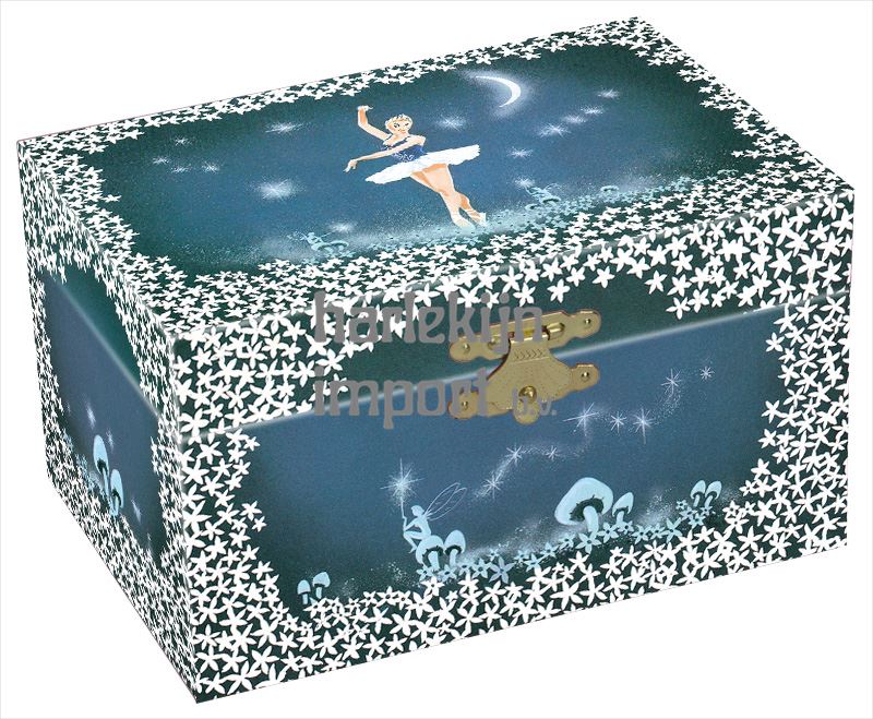 Juwelendoosje met muziek. Print: Ballerina, maan en sterren.