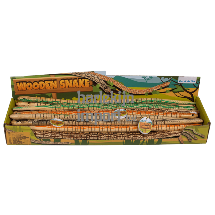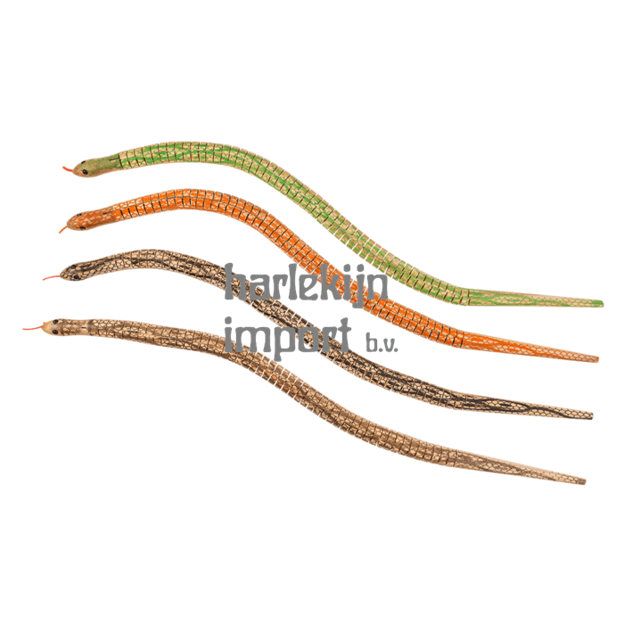 Dsp houten speelslang, ca 50 cm. 4 assortie. 24 stuks in display. |