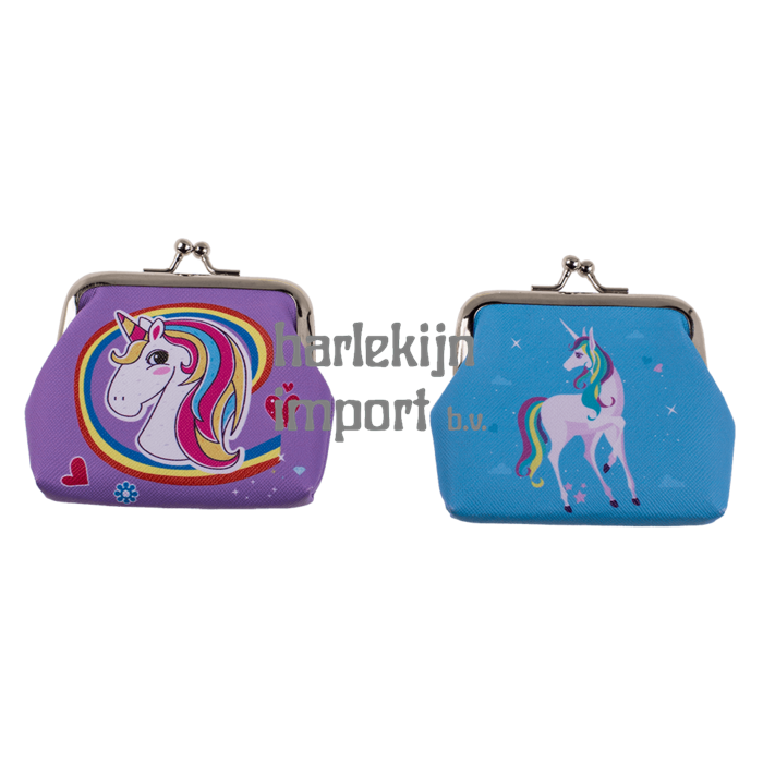 Dsp Portemonnee Eenhoorn. 3 assortie. 12 stuks in dislay. 9x8 cm.