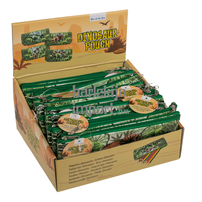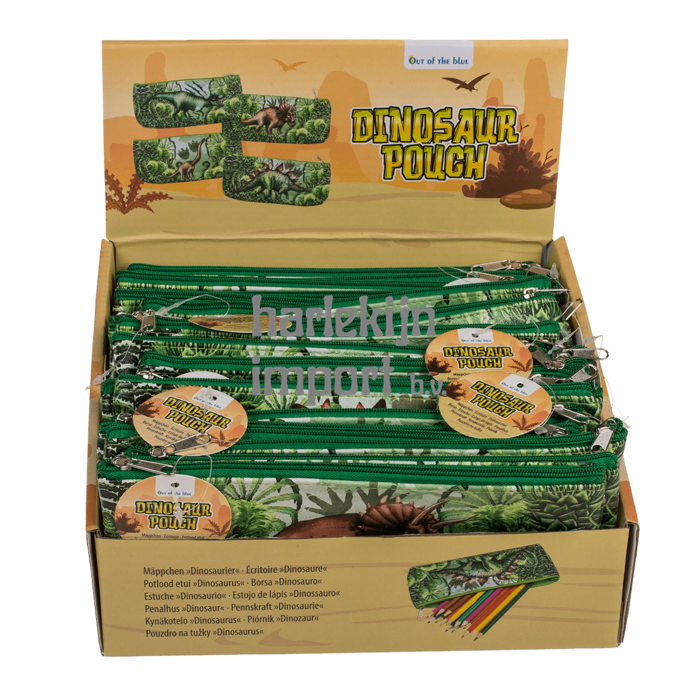 Dsp etui dinosaurus, 21x9,5 cm. 4 assortie. 24 stuks in display.